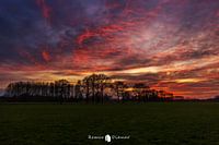 In het serene dorpje Gammelke onthult de avondhemel een spectaculaire vertoning, alsof de lucht zelf in brand staat. De zon zakt onder de horizon en werpt haar stralen als vurige penseelstreken over het uitgestrekte weiland. De kleuren dansen in een adembenemend schouwspel van warme tinten die de hemel omtoveren tot een palet van vlammen. Het tafereel lijkt haast bovennatuurlijk, een geschenk van de natuur dat het dorp in een magische gloed hult.