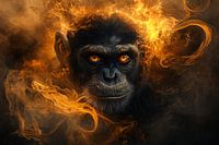 Dit indrukwekkende kunstwerk toont een majestueuze aap met vurige, intense ogen die direct je aandacht grijpen. Omringd door mystieke vlammen en rook geeft dit ontwerp een gevoel van kracht en mysterie. De levendige details van de aap en de vurige sfeer zorgen voor een fascinerende en krachtige uitstraling, ideaal als statement piece voor een modern interieur. Deze realistische weergave in hyperrealistische stijl creëert een dramatische en artistieke sfeer die het kunstwerk geschikt maakt voor ruimtes waar men graag wat extra energie en karakter toevoegt, zoals een kantoor of slaapkamer.