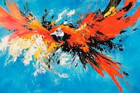 Over ‘Vurige ara tijdens de vlucht - dynamisch en levendig’ van Poster Art Shop