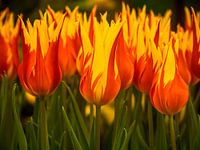 Meerder vurige tulpen bij elkaar, het lijkt met een open haard waar je naar zit te kijken. Met de rood/gele kleuren wordt je helemaal warm van.