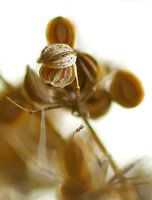 Vurige zaadjes heeft deze schermbloem, hoe mooi is dit sterven van een plant en hoe duidelijk het begin van nieuw leven. Alpha en omega .