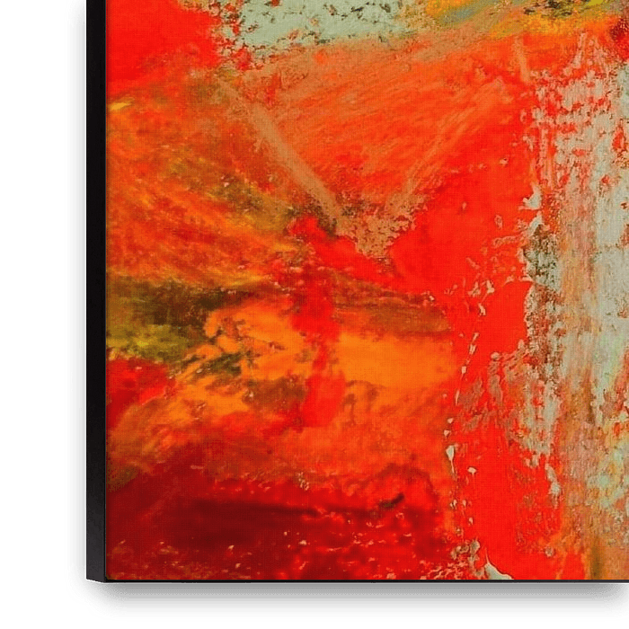 Koop dit abstracte kunstwerk Vurige zonsopgang in rood, geel en oranje. van Thea Bouwman op canvas, aluminium dibond, (ingelijste) fotoprint, behang en ArtFrame, op maat geprint in Fine-Art kwaliteit.