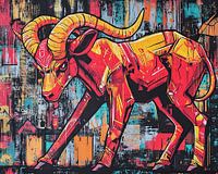Koop dit abstracte kunstwerk Vuur Ram | Dieren Kunst Met Hoorns van OMG Art als print op canvas, aluminium dibond, (ingelijste) fotoprint, behang en ArtFrame. Voor jou op maat geprint in Fine-Art kwaliteit.