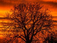 Deze 100 jaar oude Walnoot of Okkernoot staat op het erf van mijn Buurman. 's Ochtends zie ik de zon opkomen, en de boom geeft dan een mooi winters silhouet tegen de vuurgloed.