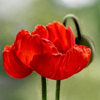 Close-up van een klaproos tegen een groene achtergrond