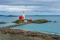 Het Fisgard Lighthouse aan de westkust van het Canadese Vancouver Island. Dit is de allereerste vuurtoren aan de Canadese westkust en dateert uit 1860. Op de achtergrond vaart een container schip richting de stille oceaan.
