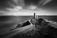 Le Petit minou, vuurtoren in Finistère, Bretagne, Frankrijk. Zwart wit beeld met lange sluitertijd.
