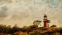 Vuurtoren De Vuurduin staat op de Vuurboetsduin en schijnt haar licht zowel over de Waddenzee, als over de Noordzee. De foto toont de vuurtoren met licht en bewerkt in Photoshop met warme kleuren. Schilderachtig.