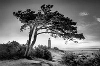 Vuurtoren Dornbusch aan de Hiddensee in zwart-wit. van Manfred Voss, Zwart-Wit Fotografie