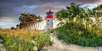 Baken Gellen op het Oostzee-eiland en badplaats Hiddensee in Mecklenburg Vorpommern. De vuurtoren voor geliefden. Deze kleine vuurtoren staat op de Gellen, die in het zuidelijke deel van het eiland en in het zuiden van Neuendorf ligt. s Avonds bij zonsondergang is het de moeite waard om een wandeling te maken naar deze kleine en sfeervolle vuurtoren, die direct aan het prachtige strand ligt.