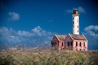De karakteristieke vuurtoren op het onbewoonde eiland Klein Curaçao.