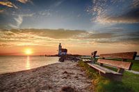 Vuurtoren Marken bij zonsopkomst van John Leeninga