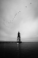 De vogels die over de vuurtoren vliegen geven het motief wat meer sfeer.