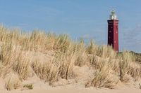 Vuurtoren Westhoofd in Ouddorp op het eiland Goeree-Overflakkee in Zuid-Holland in de duinen op een mooie nazomerdag in September.