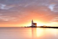 De vuurtoren het Paaard van Marken in het zonlicht gevangen.