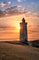 De idyllische historische vuurtoren Rubjerg Knude Fyr staat in de duinen van het kustlandschap aan de Deense Noordzeekust.