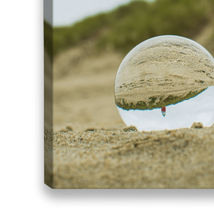 Vuurtoren Eierland op Texel met omgekeerd spiegelbeeld in de bol.