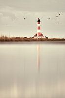 De vuurtoren van Westerheversand aan de Noordzeekust in Noord-Friesland.