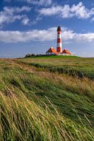 De idyllische vuurtoren in het Nationaal Park Waddenzee in Sleeswijk-Holstein in Noord-Duitsland is bekend van vele reclamespots. De bezienswaardigheid van het Nationaal Park Waddenzee biedt in alle seizoenen een perfect fotomotief.