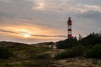 Panoramisch uitzicht op de vuurtoren van Wittdün in de duinen van Amrum, Duitsland