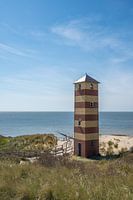 Een vrolijke zonnige foto van deze mooie vuurtoren in de kaapduinen met de noordzee in de achtergrond.