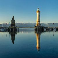 Vuurtoren en Beierse Leeuw in de haven van Lindau aan het Bodenmeer