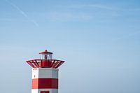 Vuurtoren aan het eind van de Pier van Blankenberge tijdens de zonsondergang.