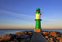 Koop de foto Vuurtoren in de avond van Ostsee Bilder op canvas, aluminium dibond, (ingelijste) fotoprint, behang en ArtFrame, op maat geprint in Fine-Art kwaliteit.