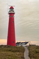 Vuurtoren in de duinen bij het eiland Schiermonnikoog in het Waddengebied in het noorden van Nederland.