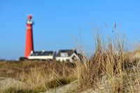 Vuurtoren in de duinen op het eiland Schiermonnikoog in de Waddenzee in het noorden van Nederland. De Noordertoren ligt aan de noordkant van het eiland aan het Noordzeestrand.
