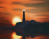 Koop dit vogel kunstwerk Vuurtoren met een zonsondergang en wervelende veters wolken van Jan Keteleer op canvas, aluminium dibond, (ingelijste) fotoprint, behang en ArtFrame, op maat geprint in Fine-Art kwaliteit.