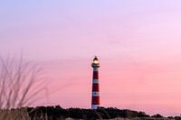 Vuurtoren van Ameland in het avondlicht, in de buurt van Hallum.