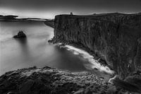 Koop dit landschapskunstwerk Vuurtoren op IJsland met kliffen aan zee in zwart-wit. van Manfred Voss, Zwart-Wit Fotografie als print op canvas, aluminium dibond, (ingelijste) fotoprint, behang en ArtFrame. Voor jou op maat geprint in Fine-Art kwaliteit.
