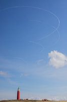 Vuurtoren op Texel met lijnen gemaakt door 5 straaljagers