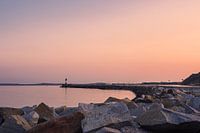Vuurtoren op de pier van Sassnitz op het eiland Rügen in de avond.