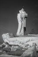 Het hoog opspattende water van de Oostzee raakte de vuurtoren en de stenen ervoor, en stolde vervolgens in bizarre ijsvormen terwijl het naar beneden stroomde.
