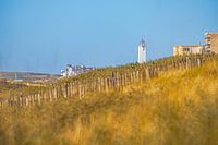 Uitzicht op de vuurtoren van Noordwijk vanuit de duinen.