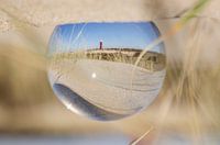 Vuurtoren van Ouddorp gefotografeerd door een glazen bol in de duinen aan de Nederlandse kust met zonnig weer.