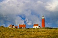Vuurtoren op het Waddeneiland Texel in de duinen met tijdens een stormachtige herfstochtend. De vuurtoren van Eierland staat op de noordpunt van het eiland.