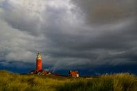 Vuurtoren op het Waddeneiland Texel in de duinen tijdens een stormachtige herfstochtend. De vuurtoren van Eierland staat op de noordpunt van het eiland.