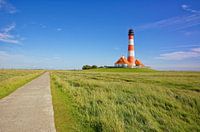 Koop de foto Vuurtoren van Westerheversand van Gisela Scheffbuch als print op canvas, aluminium dibond, (ingelijste) fotoprint, behang en ArtFrame. Voor jou op maat geprint in Fine-Art kwaliteit.