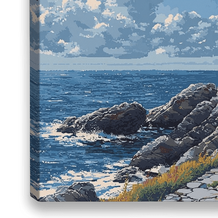 Een vuurtoren in een schetsachtig schilderij straalt rust en kracht uit. De hoge, cilindervormige toren staat trots op een rotsachtige kust, omgeven door ruige golven en een winderige hemel. Met losse, expressieve lijnen vangt de kunstenaar de beweging van het water en de eenzaamheid van de toren, als een symbool van houvast en richting.