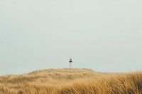 Een majestueuze vuurtoren troont te midden van zachte, gouden duinen, zijn silhouet resoluut tegen de grijze lucht. Het spel van licht en schaduw verleent het tafereel een mystiek aura, terwijl de wind door het hoge gras waait en verhalen van vroegere zeelieden fluistert. Een eenzaamheid die zowel rustgevend als beklemmend is.