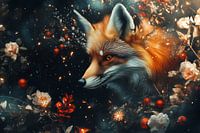"Vuurvossen Betovering" toont de sierlijke schoonheid van een vos, gehuld in een zee van fonkelende lichtjes en winterse bloemen. De vurige oranje tinten van zijn vacht contrasteren prachtig met de zachte, koele achtergrond, waarin sprankelende sneeuwvlokken en glinsterende rode bessen een magische sfeer creëren. De vos straalt een…