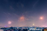 Overzicht van de Indiase stad Chennai tijdens het vuurwerk op Divali (lichtjesfestival)