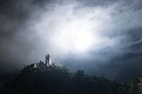 De Reichsburg in cochem tijdens een vuurwerkshow.