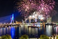 Gemaakt tijdens de vuurwerkshow met de Wereldhavendagen. Schitterend uitzicht op de Erasmusbrug en Kop van Zuid met Montevideo, New Orleans, het KPN-gebouw, De Rotterdam en Cruise Terminal.