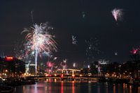 Amsterdam Nederland Nieuwjaarsvieringen in het centrum van de stad. Vuurwerk brengt het nieuwe jaar in over de Amstel.
