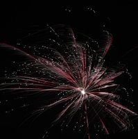 Deze vuurwerkbloem bevat allen de kleuren rood en wit. De achtergrond is zwart. Vanwege de vorm van het vuurwerk vond ik een vierkant beeld mooier.
