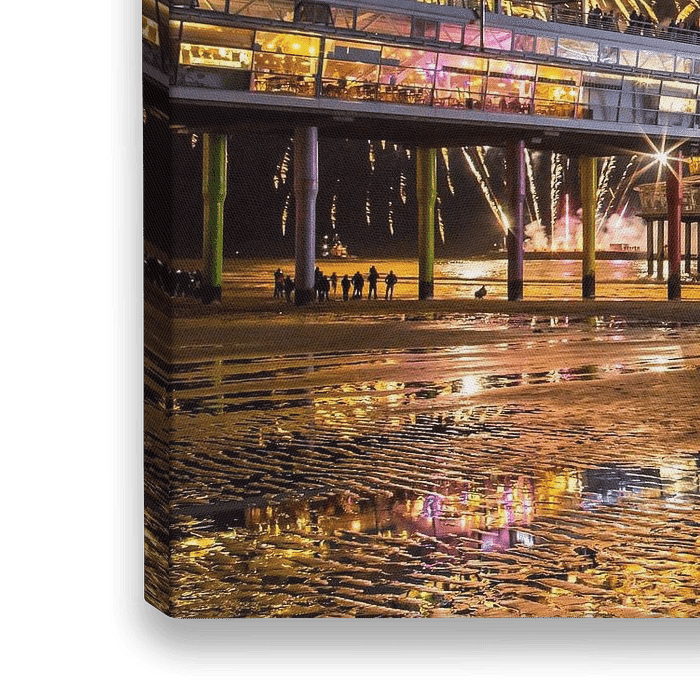 De show van Engeland met Pier en verlicht reuzenrad tijdens het Internationaal Vuurwerkfestival Scheveningen 2018.